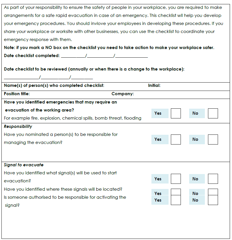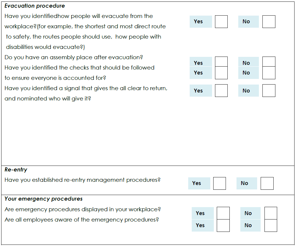 There are a number of possible examples of emergency procedures for your workplace.