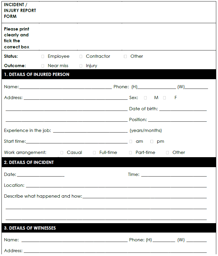 Details of all reportable incidents, injuries, diseases and dangerous occurrences must be recorded, including: