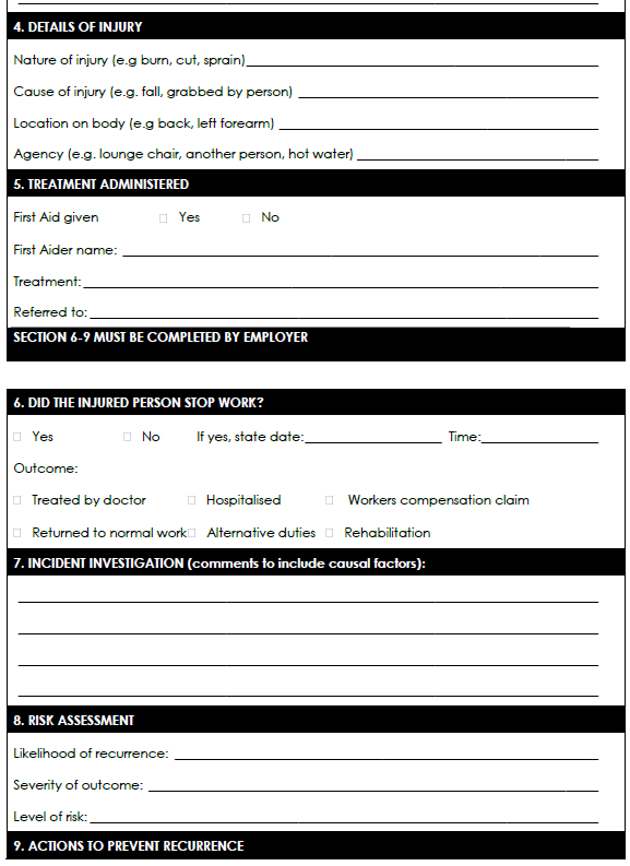 If the injury continues for a long time (prolonged absence), the medical practitioner must send a Progress Medical Report (W.Cl 5) to the Commissioner. The progress report should be submitted on a monthly basis until the condition is fully stabilised. This informs the Commissioner of how long the employee is off work.