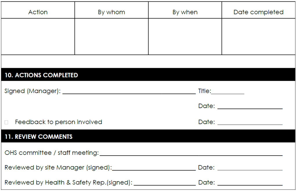 Near misses are incidents that have a potential for harm but result in no injury, e.g. a contractor’s tool falling from a height and narrowly missing an employee. Research shows that an injury accident is often preceded by several near misses, which are not reportable to the HSE. Although not part of the legal duties mentioned above, it is also good practice to record non-reportable “near-miss” incidents, workplace accidents and occurrences where no-one has actually been hurt or become ill, but where the consequences could have been serious for workers. In this way, it is possible to learn from such incidents so that workers are protected from harm, using the old adage “prevention is better than cure”.