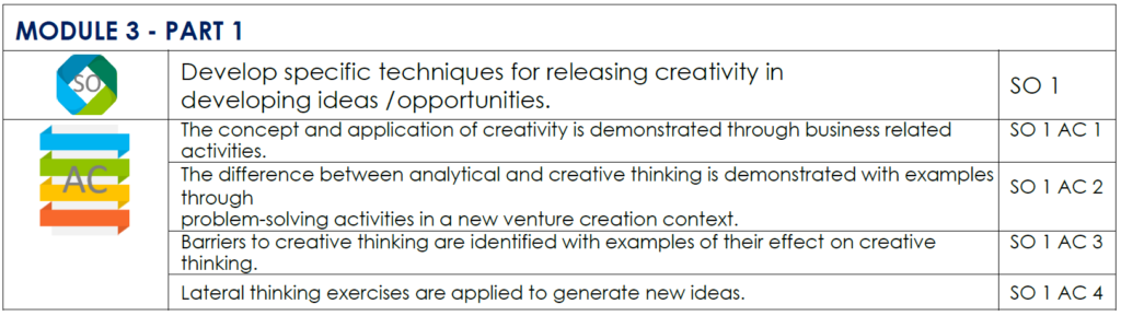 MODULE 3 – PART 1: Develop specific techniques for releasing creativity in developing ideas / opportunities.