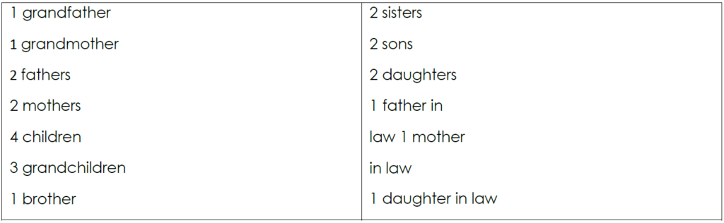 A South Africa man was celebrating his golden wedding anniversary with a family reunion. He had arranged a dinner party in a private room in a hotel with an events coordinator to welcome his guests. Shortly after the party started, he looked around the family and noticed that there were present:
