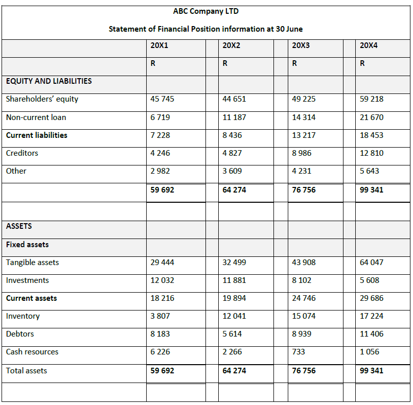 From a scrutiny of the Statement of Financial Position (balance sheet) it is apparent that the current liabilities have increased relatively more than the current assets over the four-year period. This may be a cause for concern and ABC Company would be well advised to ensure that is has adequate cash resources on hand in order to meet its short-term commitments.