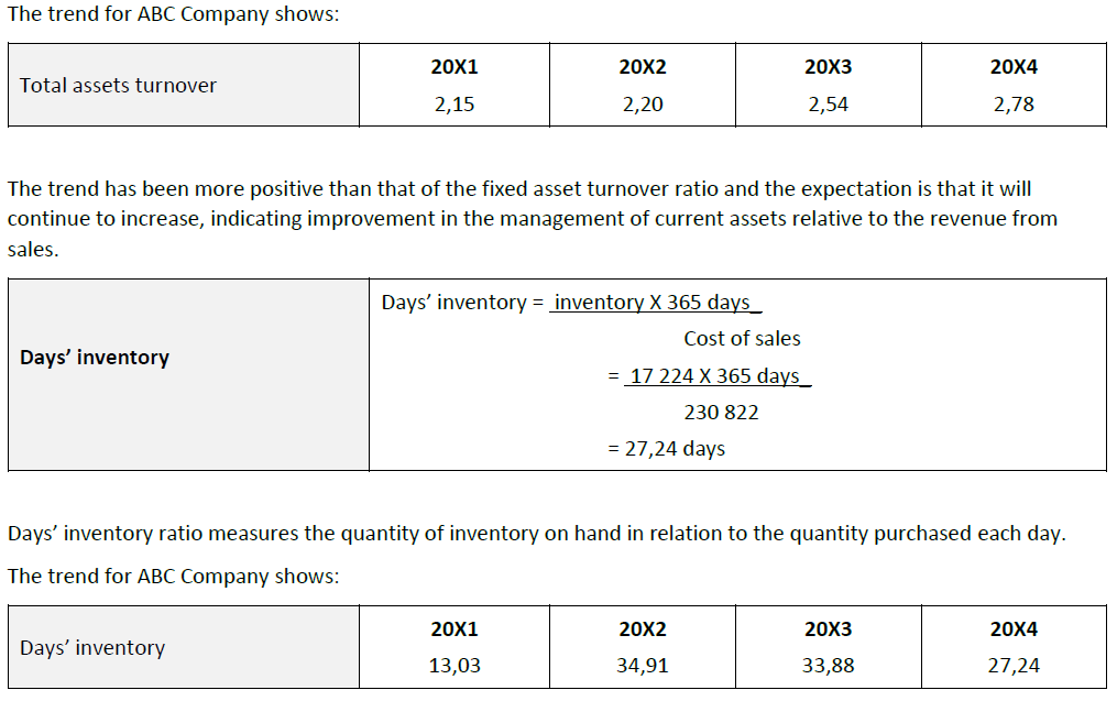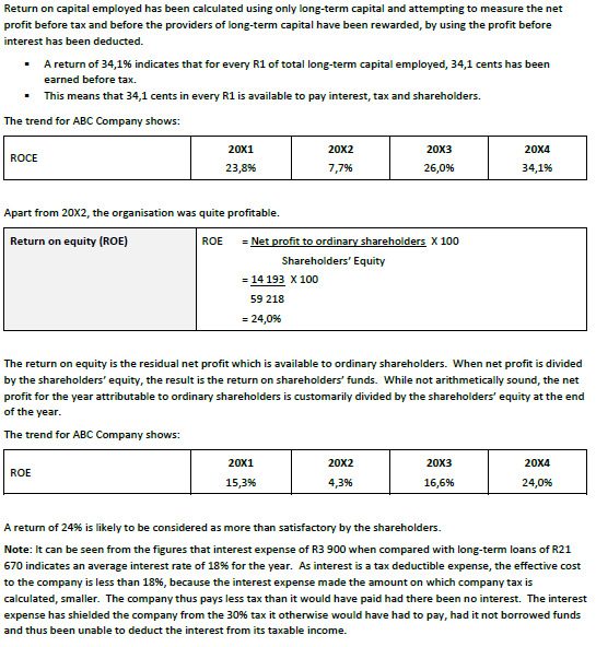 Note: The 20X4 figures from Document Set 1 are used to illustrate calculation of all the ratios which follow in the rest of the learner guide.