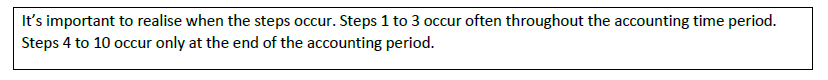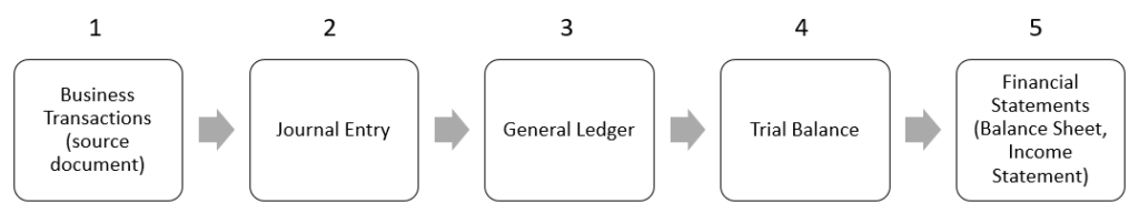 The main steps of the accounting cycle can be represented by the following graphic (reduced to 5 main steps):