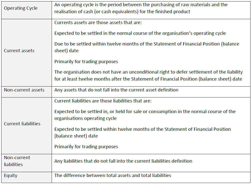 An organisation is required to present current and non-current assets and current and non-current liabilities separately unless a liquidity approach allows for a fairer presentation. The liquidity approach presents assets and liabilities in order of liquidity and is generally adopted by organisations that do not have a clearly identifiable operating cycle, for example financial institutions.