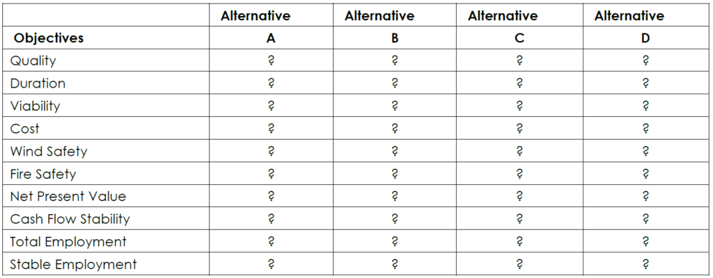 Uncertainty and alternatives: An alternative should not be rejected from consideration because its effects on some objectives are uncertain, as shall be discussed later.