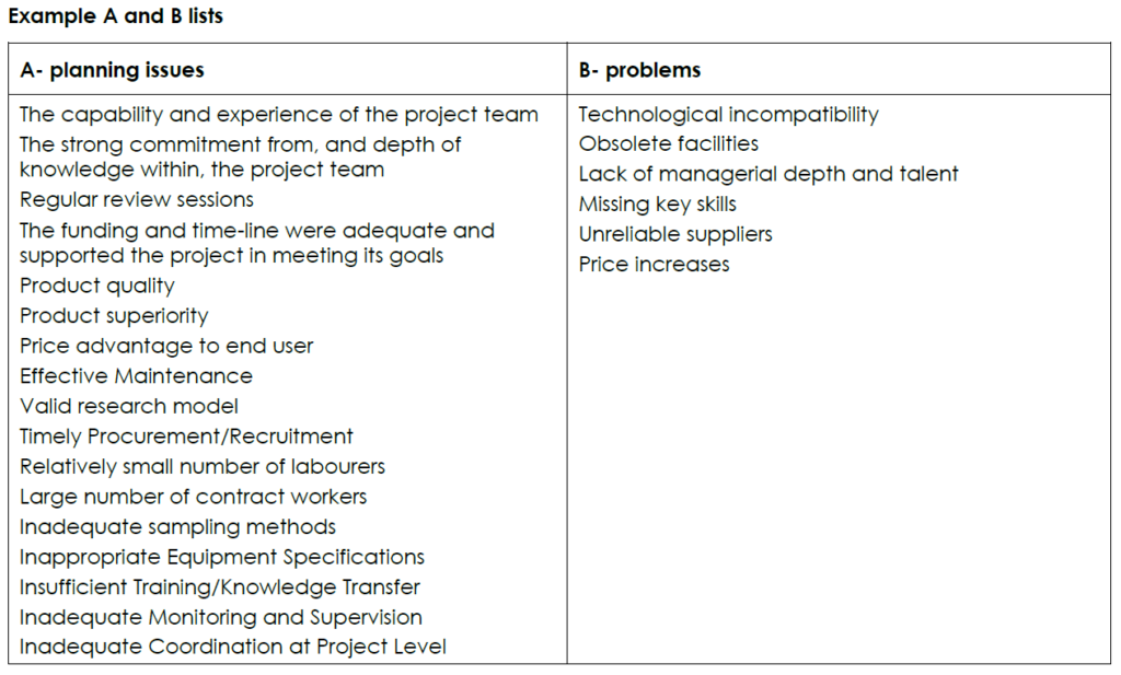 Brainstorming32 can be an effective way to generate lots of ideas on a specific issue and then determine which idea is the best solution. Brainstorming is most effective with groups of 8-12 people from various departments across the organisation, who have different backgrounds and expertise. Even in specialist areas, outsiders can bring fresh ideas that can inspire the experts.